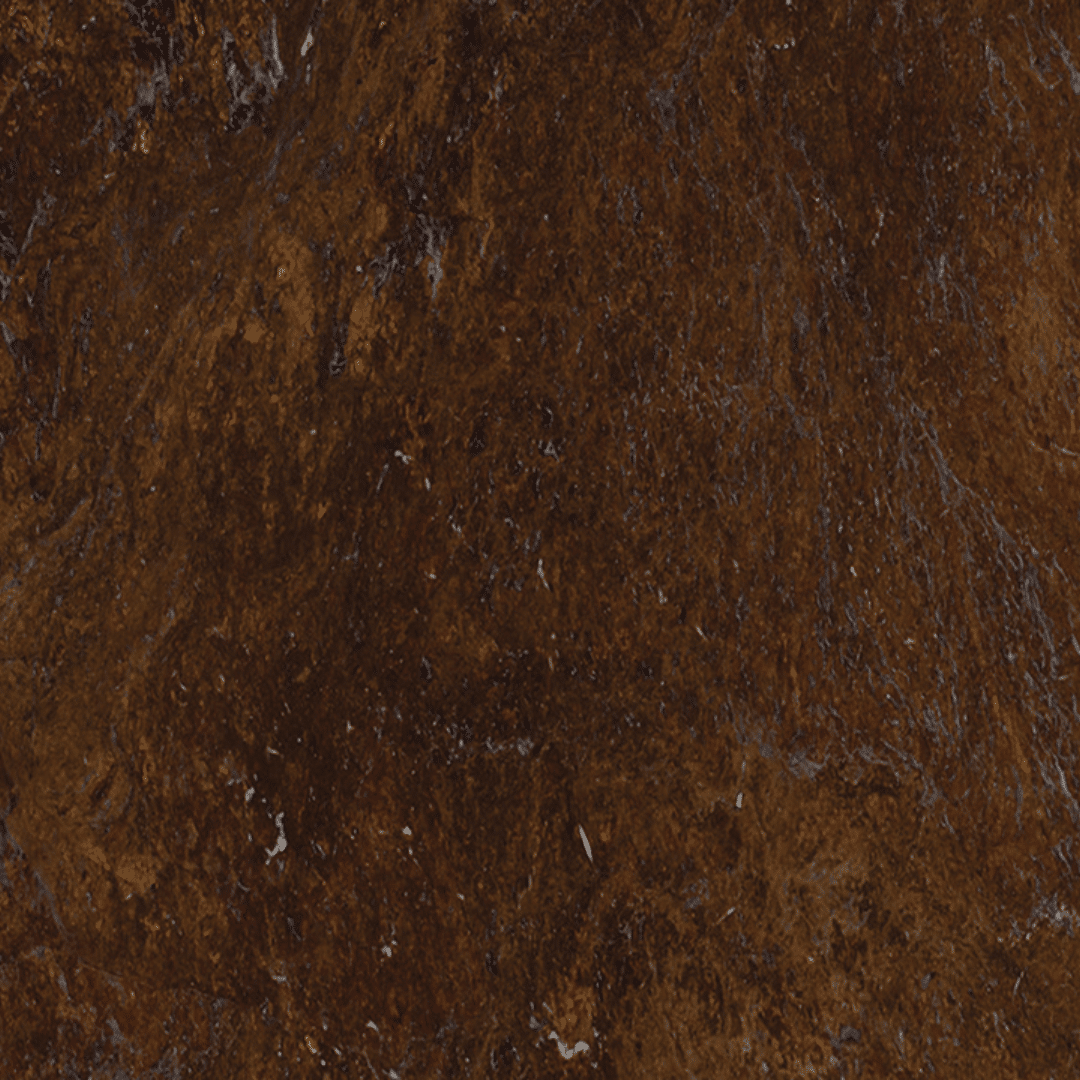 Quartzito de tom marrom-castanho (acastanhado), com nuances terrosas quentes e detalhes sutis em cores contrastantes, visual sofisticado e versátil.